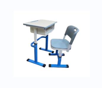 單人 雙柱升降課桌(櫸木藍(lán)邊)